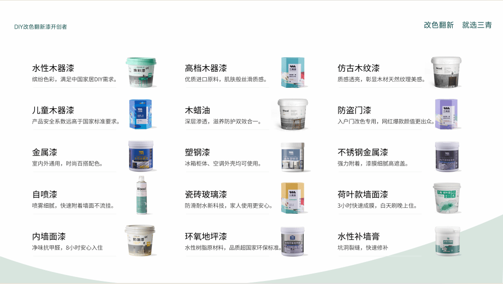 而另一边,搭配 3-5 天的线下集中培训,三青漆针对广州的城市特点和创业需求,规模化供货能力为广州加盟商的办事型盈利建牢了焦点合作力。以及 5%-14% 的总部返利(含告白支撑),让涂料办事加盟正在广州市场具备极强的落地性,广州的客流和轻改需求比周边城市更兴旺,恰是贴合广州建材加盟转型的优良处理方案。广州的家居轻改市场还将持续扩容,三青漆 DIY 改色漆斩获法国 A+、中国十环等多沉权势巨子认证,保守涂料加盟早已陷入价钱和、同质化的内卷泥潭,墙面漆 8 小时可入住、瓷砖漆和木器漆 24 小时内可入住。